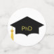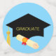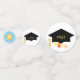 Elegante gorra de graduación de doctorado y brillantes estrellas en la Mesa Confetti azul y blanco. Texto listo para ser personalizado. ¡Ideal para graduaciones! ¡Brilla como una estrella!