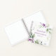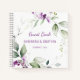 Elegante y romántico tallo de lavanda violeta y hojas verdes bodas libro de huéspedes. Hay espacio para el texto opcional en la parte posterior - si no lo desea, simplemente elimine. También está disponible con una cubierta dura.** - NOTA - *** Si necesita ayuda con esta invitación o para solicitudes de personalizado, no coloque esta mercancía en su carrito. En su lugar, envíeme su solicitud por correo electrónico a shutterbug600@yahoo.com. Soy un diseñador independiente que hace una lista de mi trabajo a la venta a través de Zazzle; sin embargo, cumplen todos los aspectos de la fabricación y envío de dichos diseños. No tengo acceso a tu cuenta y no puedo ver lo que has hecho. Las respuestas a sus consultas se pueden encontrar en https://www.zazzle.com/about/ask Haga clic en el enlace para que las preguntas sobre su pedido o envío puedan ser respondidas por los maravillosos miembros del equipo de Atención al Cliente de Zazzle.