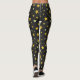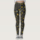 Las estrellas de oro marcan el patrón negro Leggings. Diseño mágico, noche estrellada.