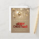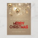 Envía tus cálidos deseos a tu familia y amigos con esta hermosa tarjeta postal de Navidad con bolas de Navidad doradas brillantes, estrellas y perla dorada con "Feliz Navidad" en tipografía roja.