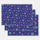 Estrellas judías azules Diseño Papel de envolvimiento conjunto en azul, dorado y turquesa.