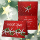 Decora las tarjetas de Navidades de estrellas del mar de los pasillos con mensaje personalizado. El rojo con el diseño de estrellas brillantes cubre todos los lados de las tarjetas dobladas que vienen en dos tamaños. Las grandes estrellas (o estrellas de mar) blancas están envueltas en hojas verdes y huecas y decoran el frente y el interior. El guión giratorio, en blanco, es fácil de personalizar tanto en el frente como en el interior. La frase de ejemplo es: "Deck the halls... con amor y risas. Saludos cálidos para una fantástica temporada de vacaciones".