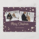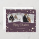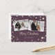 Navidades mágicos fototarjeta con copos de nieve y estrellas. Crea una hermosa postal de Navidades de fotos morados para tu familia y amigos. Personaliza fácilmente esta tarjeta postal de Navidades estrellados con tu nombre familiar, 3 fotos y un mensaje.