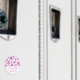 Diseño moderno con estrellas "brillantes" rosas y blancas en un fondo blanco. Nevera imán con un diseño de personalizable para que usted pueda personalizar con su propio color de fondo, texto, imágenes e ideas. Tenga en cuenta que se trata de una imagen impresa creada con fotografías originales y técnicas digitales, que no brilla ni contiene chispas reales.