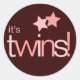 Estrellas rosas gemelas en Pegatina de bebé marrón