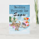 Dé a regalo de la risa esta estación con esta tarjeta de Navidad caprichosa y chistosa. Características del este diseño que una niña sledding en un paisaje nevoso con su perro se vistió para arriba como reno.