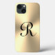 Estuche de Funda metálico de oro-Mate Phone Apple iPhone 13. Cubierta telefónica personalizada con nombre inicial y textura dorada brillante. Idea de regalo de cumpleaños o Navidades de moda. También disponible para modelos antiguos y otras marcas. Colores de personalizable.