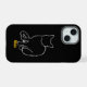 Estuche de teléfono negro con contorno blanco de gato. Personalizar con nombre o mensaje corto.