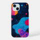 Un fondo abstracto dinámico y moderno con un fondo azul oscuro, casi negro, contrastado con formas vibrantes y fluidas en neón naranja, rosa brillante, azul eléctrico y morado. El diseño tiene una composición caótica pero equilibrada con salpicaduras, puntos y grandes manchas amorfas que parecen flotar o colisionar. La textura le da una sensación de grunge o pintado, pareciéndose a una colorida explosión cósmica o manchas de tinta en el agua. Se trata de un fondo de pantalla audaz y enérgico ideal para dispositivos digitales.