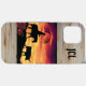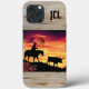 Personalice este estuche único para iPhone "One of a Kind" y para Vaqueros Longhorn Steer. Presenta a un Vaquero montando un caballo en un toro longanornio durante un hermoso atardecer Naranja... ¡Rodeado de fronteras de madera! Diseño de arte original de Kerry Miller.
