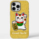 ¡Este estuche de teléfono de Maneki Neko traerá buena suerte a tu teléfono! ¡Este es un encanto popular de buena suerte en Japón! El fondo dorado de la vid es un patrón clásico japonés "karakusa", que es un diseño muy común para los paños de envoltura furoshiki. Utiliza el editor de personalización para cambiar el color. El texto de abajo dice "¡Buena suerte!", ¡pero se puede personalizar para decir lo que quieras!