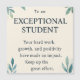 Estudiante Excepcional es una tarjeta de aprecio sincero diseñada para educadores que desean reconocer y celebrar el logro estudiantil. Con un suave diseño de acuarela botánica con hojas verdes y sutiles motas doradas sobre un fondo beige cálido, esta tarjeta transmite un mensaje de aliento y positividad. Su redacción universal la hace adecuada para estudiantes de todas las edades y orígenes. Ya sea utilizada en aulas, ceremonias de graduación o notas personales de reconocimiento, esta elegante tarjeta ayuda a los maestros a expresar gratitud e inspirar un crecimiento continuo.