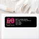 Etiquetas de dirección de devolución para 50 cumpleaños en negrita con tipografía blanca, dorada y rosa sobre fondo negro. Ideales para celebraciones de cumpleaños glamurosas. Artículos para fiestas a juego disponibles.