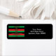 Una etiqueta postal de Kwanzaa que establece los siete principios de la festividad y su significado en los colores verde, negro y rojo