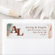 Resumen Moderno Ethereal Watercolor Terra Cotta Etiquetas Monogramadas de Dirección de Retorno. Este diseño rústico está bellamente pintado a mano con colores ricos que son perfectos para la caída. Mostrado en el color de la paleta de color Boda de Terracota de Naranja: Terra Cotta quemada, Verde oscuro verde oscuro, rosa gris oscuro, marrón rico en siena y beige. Con detalles falsos de Relieve metalizado de purpurina metálico, y un precioso guión con cruz, la colección de bodas de acuarela etérea hará que su boda sea memorable y hermoso. Para ver más, busca las colecciones bodas 2021 de Moda Paperie para ver diseños más modernos y colores bodas para este año.