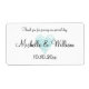 Personalizado de color azul turquesa acuarela boda de corazón botellas de vino o de agua. Pegatina de botellas de agua elegante y personalizada con corazón vintage templado. Tipografía de escritura elegante para nombres de novios y novios y mensaje de agradecimiento. Úsalo como decoración elegante de mesa o gracias a los clientes del fiesta. Incluye el nombre o el monograma más la fecha del matrimonio. Diseño romántico de moda de campo con huella rústica. También es bueno para los bodas temáticos de la playa. Pintura de color agua.