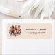 Etiqueta elegante y elegante con flores femeninas y caprichosas personalizable con flores de peonía y acentos de plumas en acuarela en tonos púrpura, melocotón, rojo y rubor. Personalice esta etiqueta de dirección de devolución de acuarela de flores silvestres boho con su propia información. Esta etiqueta será perfecta para eventos como bodas de primavera, verano y otoño o embalaje de pequeñas empresas.