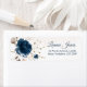 Etiqueta de dirección de retorno con diseño floral - rosa azul marino acuarela