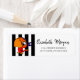 Loro adorable sobre fondo rayado negro. Un diseño elegante y sofisticado.Costumbre con su nombre y detalles de dirección.