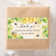 Un fondo acuarelado blanco y dorado con estilo. Decorado con abejas, miel derritiéndose y panal con flores amarillas, flores y un tarro de miel. El texto: gracias con un estilo de letra manuscrita negra con florituras. Personaliza y añade un nombre y texto. Para recuerdos de la fiesta de despedida de soltera.