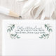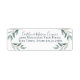 Hermosas hojas de color verde salado botánico y etiqueta de la dirección de retorno de texto de escritura a mano. Vinos verdes delicadamente alrededor de la dirección y mezclas de color verde sabio suave con el texto azul cadete y los tipos de letra manual.