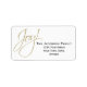 Esta etiqueta de dirección de retorno es sencilla, minimalista y elegante. Presenta un fondo blanco con la palabra Joy! en un guión falso purpurina dorado, y el nombre y dirección en texto negro. Perfecto para vacaciones o envíos de Navidades.