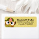 Un búho lindo con una gorra de béisbol al revés. El fondo es de color amarillo claro, sin embargo puede cambiar el color pulsando sobre el Personalizar. Estas etiquetas de dirección devueltas le dan un toque personal a sus sobres.