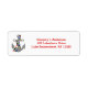 Crea algunas etiquetas de dirección de retorno de vacaciones con un toque náutico. Estas etiquetas tienen el ilustracion de un ancla de un bote en gris que está envuelto con coloridas luces Navidades. Su nombre y dirección aparecen junto al gráfico con letras rojas.