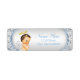 Etiquetas de dirección de bautizo de ángel con adorable bebé angelical en un bonito fondo azul y gris. Puedes agregar el texto que desees en el estilo de fuente que prefieras.