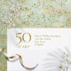 Detalles de la fecha, nombre y dirección del aniversario de bodas número 50 en elegante texto dorado. Diseñado por Thisisnotme©