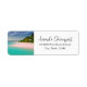 Address labels with a beautiful photograph. A scenic tropical beach with aquamarine water and a white sandy beach with a lush forest in the back.