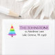 Árbol de Navidad de arcoiris bonito con acentos morados y tipografía linda.