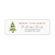 Árbol de Navidad con estrellas brillantes devuelve etiquetas de dirección con texto personalizado, acuarela de arte.
