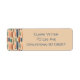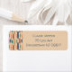 Estas etiquetas de dirección de retorno tienen un diseño moderno de mediados de siglo de ovales largos en melocotón, verde, azul, verde azulado y marrón claro con líneas negras con círculos en los extremos.