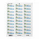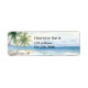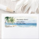 Una playa pintada con acuarela con palmeras. Personaliza y añade tu nombre y dirección. Letras negras.