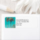 Etiquetas de direcciones con una hermosa fotografía. Palmeras altas con largos baúles delgados frente a un hermoso cielo verde. Esquema de color retro. Relajante y relajante.