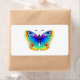 Arcoiris, realista, de dibujo artístico, colores brillantes mariposa pavo real con alas detalladas texturizadas sobre fondo blanco. Mariposa arcoiris.
