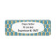 Estas etiquetas de dirección devueltas tienen un diseño art deco de arcos y de arriba abajo Ys repitiendo en todo el diseño en turquesa y amarillo sobre un campo de blanco. ¿Quieres colores diferentes? Mándame un mensaje.