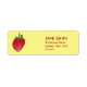 Etiquetas especiales de direcciones personalizadas y adorables con un diseño de un lindo ilustracion de fresa en rojo y verde contra un fondo de color amarillo alegre y personalizable. El texto es totalmente personalizable para incluir sus propios datos personales.