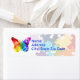 Muestre su apoyo con esta atractiva pieza de rompecabezas de arco iris conciencia de autismo marca de dirección de retorno de mariposa. Obra de arte original de Rebecca de Nightowl's Menagerie, 2013.