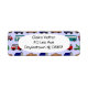 Estas etiquetas de dirección de retorno tienen un diseño de novedad de camiones y autobuses en rojo, azul, verde y marrón en un campo de azul claro.