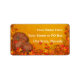 Diseño de la etiqueta de la dirección de retorno del boda de tonos amarillos, rojos, marrones y naranjas con la hoja decorativa de color otoñal y el borde de la vid con un grupo de calabazas en la esquina inferior. El fondo tiene una hermosa textura falsa para un aspecto de papel antiguo. Este diseño también viene en muchos otros productos de papel para satisfacer todas las necesidades de su boda. Siga el enlace de abajo.