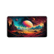 Paisaje del planeta alienígena Planeta Psicodélico Espacio plantilla de banner, fondo ilustracion horizontal del futuro con montañas, planetas, árboles, luna Escapismo Surrealista