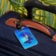 Etiqueta azul del equipaje de la mariposa con la