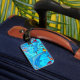 etiqueta azul del equipaje de los delfines riéndos