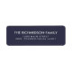 Estas etiquetas de dirección de retorno, sencillas y elegantes, presentan un fondo azul medianoche con texto falso de color plateado.