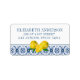 Una bonita etiqueta de dirección de regreso de boda de limón decorada con limones y azulejos italianos azules. Perfecto para tu ducha de boda de limón con azulejos italianos azules. Diseñado para ti por Blackberry Boulevard.