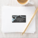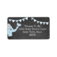 Adorable diseño de pizarra, etiqueta de la dirección de la ducha para bebés en azul y blanco. Un fondo de imagen de pizarra. Un lindo elefante azul bebé con puntos de polka blanco, una oreja de patrón de cheurón gris y banderas de amarre a juego por encima. Personalizado con el nombre y la dirección de la futura madre. Perfecto para un bebé -"Baby Shower temática del elefante". Añadir productos coincidentes. Por favor visite "La Princesa Hungaricana - Una Boutique" @zazzle.com/hungaricanprincess*. Mira en la categoría "Baby" o "Elephant Baby Shower Collection". Congratulations.
