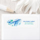 Etiqueta Ballena acuarela bajo la dirección de retorno azul
