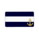 Diseño único y elegante con franjas náuticas azules y un brillante ancla dorada.